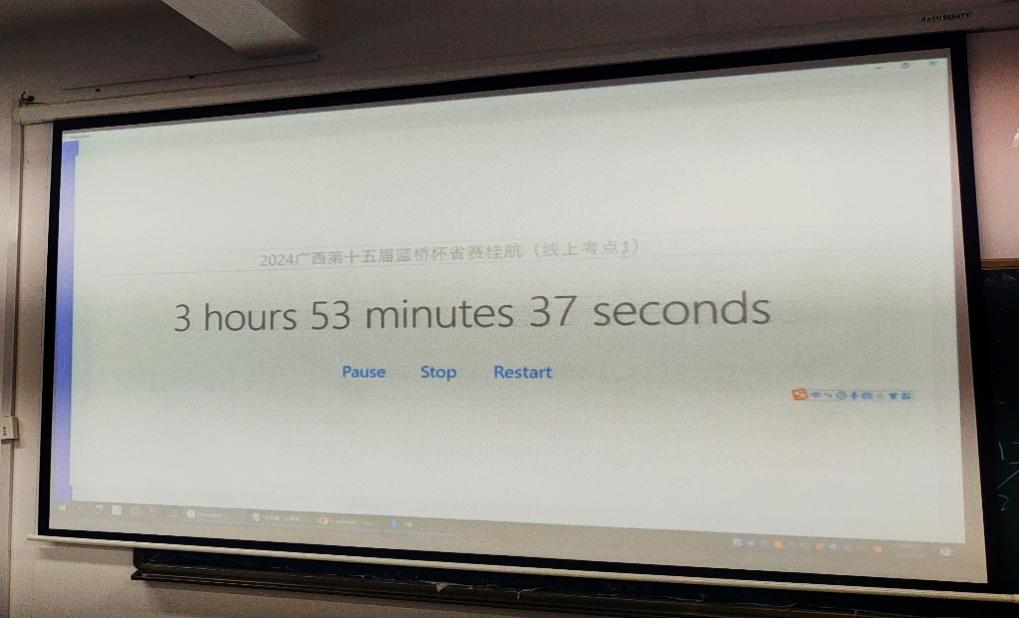2024年4月21日上午9:00-13:00,桂林航天工业学院·数据科学教研室在巡天楼519大数据实验室成功组织了第十五届蓝桥杯大赛软件赛广西区省赛的线上考点考试。这是赛事方以及学院首次采用线上模式进行此类重要赛事,标志着学院在教育信息化方面迈出了坚实的一步。