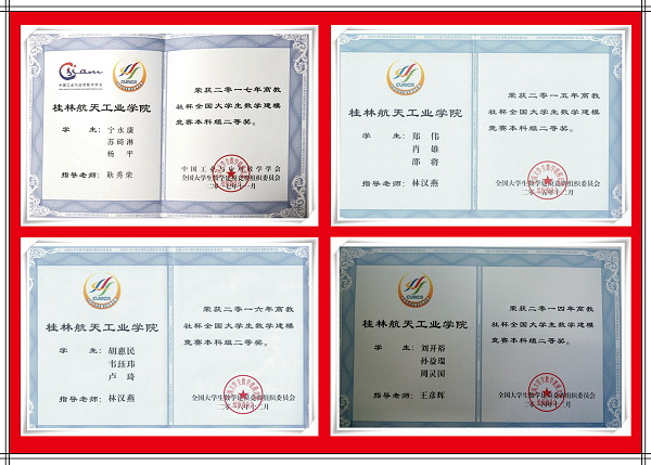 承担了全国大学生数学竞赛等工作,从2014年起,共获广西区一等奖90项,广西区二等奖151项,广西区三等奖185项;一等奖和二等奖的获奖率5年来均占广西区14所同类本科院校一、二等奖获奖总数的近一半,获奖人数和获奖比例5年来稳居全区同类院校榜首。