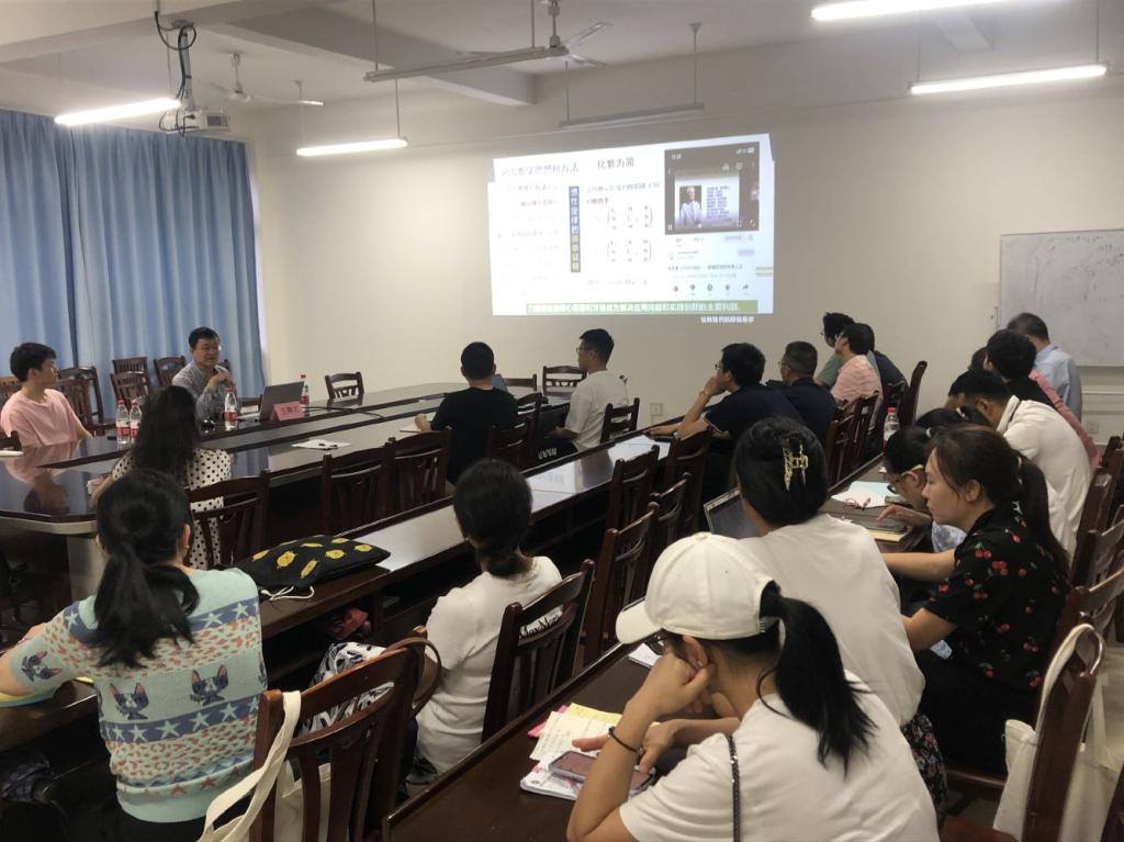 下午,王卿文教授做了《让线性代数更适宜教与学——线性代数课程的建设与思考》的一流课程建设报告,报告由吴果林教授主持,FUN乐天使官方网站全体无课大学数学课程教师聆听了本次报告。王教授首先从上海大学FUN乐天使官方网站国家一流课程《线性代数》的建设出发,介绍了教育数学与一流课程建设的关系,以及国家一流课程的“八大”基本要求。随后,具体给大家介绍了一流课程的教学理念与教学模式,并通过具体例子从调整优化课程体系和内容、引领读者发现知识、突出数学思想和方法、兼顾知识的深度、广度和应用度以及课程思政等几个方面去进行一流课程《线性代数》课程资源建设——教材建设介绍了一些个人的体会和做法。最后向大家推荐和介绍了教育部直属学会——中国高等教育学会教育数学专业委员会的概况,并鼓励大家积极申报学会课题。